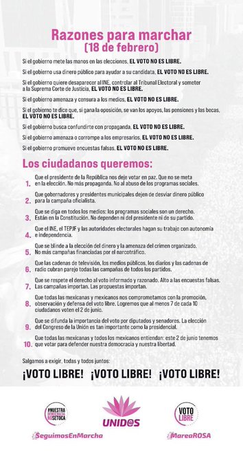 Por lo que la concentración en el Zócalo es para pedir que el gobierno de López Obrador saque las manos del proceso electoral y deje que sean los mexicanos quienes decidan mediante el VOTO LIBRE el futuro de país.