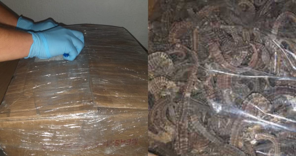 CIUDAD DE MÉXICO, 11 de noviembre (AlMomentoMX).— Elementos de la Guardia Nacional aseguraron un paquete que contenía 541 caballitos de mar cuando realizaban tareas de inspección en las inmediaciones de la alcaldía Venustiano Carranza, en la Ciudad de México; tenían como destino la ciudad de California, Estados unidos.
