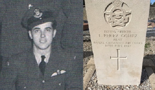 Después de la guerra los canadienses lo identificaron y en su tumba se colocó una lápida con la inscripción: Flying Officer L. Perez-Gomez. Pilot. Royal Canadian Air Force. 16th June 1944.