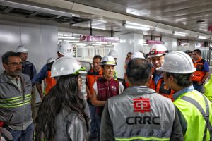 Ciudad de México.- La Jefa de Gobierno, Claudia Sheinbaum, recorrió este 10 de junio ocho estaciones, de Zaragoza a Pino Suárez, de la Nueva Línea 1 del Sistema de Transporte Colectivo (STC) Metro, a bordo del tren 676 para supervisar las pruebas de movimiento y cambio de vías, así como la operación de tableros.
