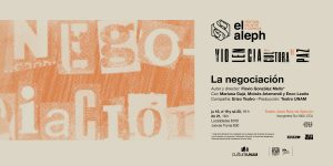 Del 18 al 21 de mayo, como parte de El Aleph. Festival de Arte y Ciencia se presenta en el Teatro Juan Ruiz de Alarcón el estreno mundial de “La negociación”, creada y dirigida por Flavio González Mello, a cargo de la compañía Erizo Teatro, con las actuaciones de Mariana Gajá, Moisés Arizmendi y Enoc Leaño, una producción de Teatro UNAM, la cual gira en torno a una pareja divorciada que lleva años sin dirigirse la palabra hasta que se ve obligada a hablar luego de que su hijo adolescente es secuestrado, por lo que, con humor negro, tienen que negociar no sólo con los delincuentes, sino entre ellos para llegar a un acuerdo. Las funciones son jueves 18, viernes 19 y sábado 20 de mayo, a las 19 horas; y domingo 21 a las 18 horas. La temporada concluye el 1° de julio.